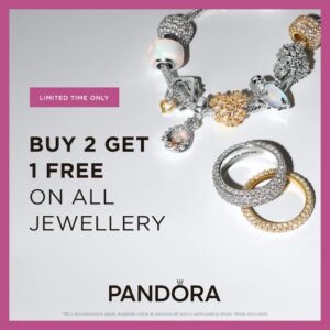Buy 2 get 1 FREE on all Jewellery at Pandora!